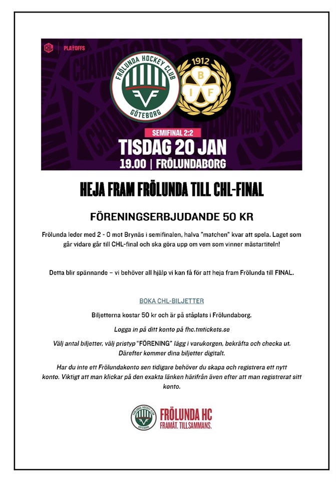 Hej! Som tidigare meddelat så håller vi alltså en ledarträff den 22/1 kl. 19.00 i ishallens kafeteria. Såhär ser agendan ut: • Marie S hälsar välkomna • Eddie ger en kort redogörelse för ekonomin (Sandra har förhinder) • Peter L informerar ang A-lag och juniorlag • Marie D informerar från barn-och ungdomsutskottet • Josefina M informerar om styrelsefrågor och lite övrigt • Tillfälle för frågor och diskussioner • Avslutning Vill också påminna om att oavsett om du är tränare, lagledare, materialförvaltare eller har någon annan funktion i laget så är Du välkommen! Kontakta mig om det är några frågetecken: eddie.hansson@uddevallahc.se Välkomna! Uddevalla Hockey Club för 12 dagar sedan 0kommentarer