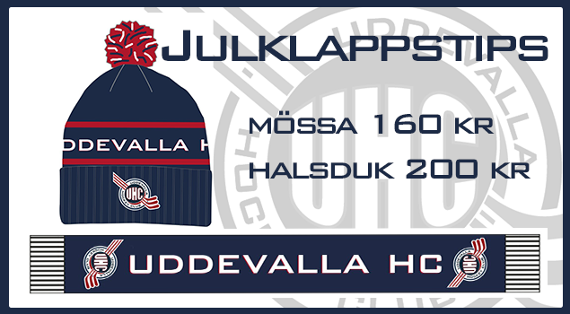 Nu har äntligen årets bästa julklappar anlänt till Fridhemshallen och vår egna tomte Robert Hanssen. En snygg mössa och en fantastisk supporterhalsduk. De går att köpa under kommande 2 veckor på måndag, tisdag och onsdag vid 6:ans omklädningsrum (Hanssens hörna) mellan 17-19 och kommer sedan att kunna inhandlas i cafeterian, under alagets hemmamatcher och när Robert är på plats i ishallen. Men för att garantera att ni har dom innan jul rekommenderar vi att ni kommer på utsatta dagar enligt ovan. Betalning sker med Swish! Välkomna! Uddevalla Hockey Club 8 dec 2021 0kommentarer