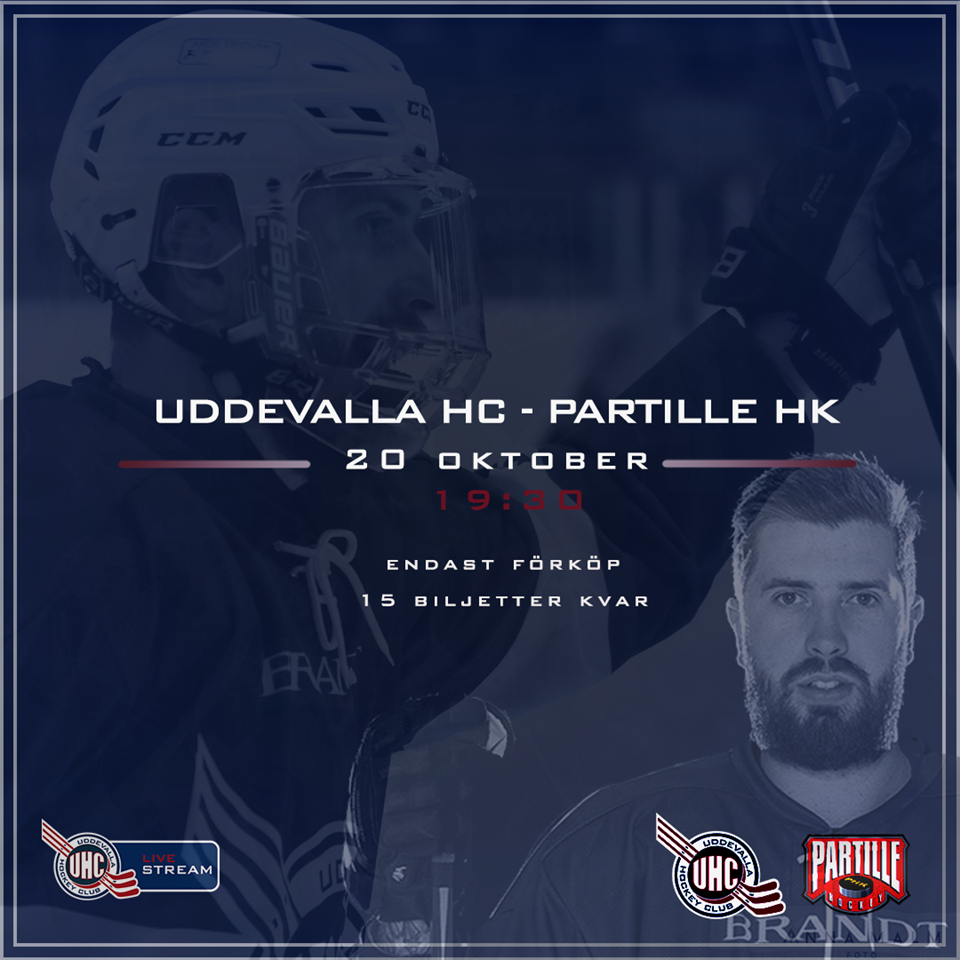 A-Laget kommer inom loppet av 7 dagar att spela 3 matcher. RIK - UHC Onsdagens match mot Rönnäng var en jämn match, resultatet speglade inte riktigt matchbilden som var jämn. Vi skjuter 38 skott mot mål men lyckas bara göra 2 mål. Matchen slutade 8-2 tillslut. Vi spelar inte alls den typ av hockey som vi gjorde mot Lions Hemma och blir straffade för det. Vi vet vad som krävs för att vi ska vinna matcher i denna serien, gör vi inte det, så förlorar vi. Lysekil - UHC I dag (fredag) väntar derby mot Lysekil. Lysekil har börjat serien starkt och är alltid ett tuft motstånd i Gullmarsborg. Lysekil nollade senast Real Munkedal med 2-0 och kommer definitivt bli en utmaning. Matchen kommer att sändas via länk: Uddevalla HC - Lysekil Vi saknar följande spelare till matchen mot Lysekil: - Pontus Lundin - Skadad förväntas spela på tisdag) - Andreas Kronlid - Sjukdom (spelar förhoppningsvis tisdag) - Arvid Malmsköld borta 4-6 veckor skadad arm - Jonathan Lindberg avstängd 2 matcher till - Andrew Lytle Avstängt 1 match till (spelar tisdag) - Noha Lindqvist - Skadad (spelar tisdag) - Erik Edh - Skadad UHC - Partille På tisdag den 20 oktober så spelar vi vår 2 hemmamatch för säsongen. I skrivandes stund finns enbart 10st biljetter kvar till den matchen, så se verkligen till att inhandla din biljett om du vill se hockey live! Biljetter hittar ni som vanligt här: Uddevalla HC - Partille Biljetter A-lag 15 okt 2020 0kommentarer