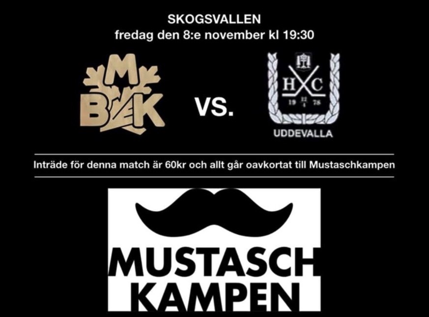 Vi alla har haft cancer i vår närhet och November "Movember" är en tradition att Svensk Hockey gör sitt i olika event. På derbymatchen Fredag 8/11 i Munkedal mellan MBK och Uddevalla HC så kommer klubbarna tillsammans med BDIFs funktionärskommite att dra sitt strå till stacken. Hela inträdet och domartaxor kommer oavkortat gå till Mustaschkampen. Så se alla till att stötta ditt MBK eller UHC på plats och gör så att vi tillsammans samtidigt gör en bra sak för oss alla denna kväll. Välkomna till Skogsvallen Fredag 8/11 kl 19,30. https://www.mustaschkampen.se Uddevalla Hockey Club 4 nov 2019 0kommentarer